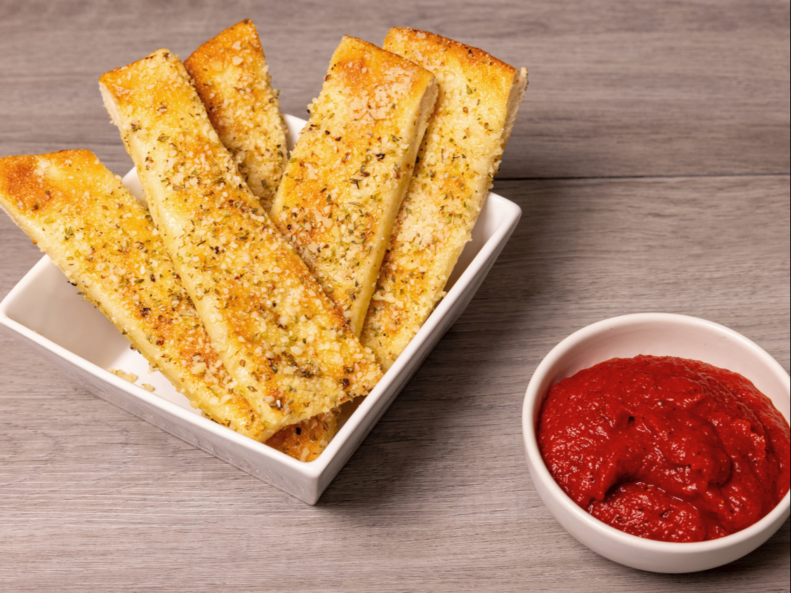 12 pieces of bread sticks marinated with garlic butter, parmesan cheese, & sprinkled oregano on top. Served with marinara sauce on the side.